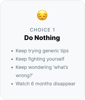 Ask yourself: What’s it costing me to keep spinning my wheels - missed opportunities, late nights, stress, lost confidence?